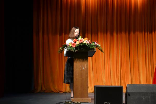 图为:沃意琳老师发言 大会过半,会计专业李婷老师作为教师代表上台讲话,在表示对同学们的欢迎后,更希望同学们尽快调整学习方式与生活方式,融入这个大家庭,在三年后同学们都能硕果累累。最后,董鸿安老师详细地向大家介绍了工商学院的教学体系、机构设置以及办学特色和学科优势。他希望15级同学能做到三个不要:不要看低自己;不要看低自己所学的专业;不要看低自己的分院。希望大家能不负青春,一路阳光。