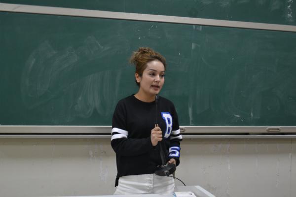 图为:米娜老师发言 为了让新成员们尽快融入团委学生会,增加对各部门的了解,在一片片掌声中,各部门部长助理依次上台进行自我介绍,并详细地介绍了各部门的职能以及负责的相关活动。本次大会接近尾声时,在外联部部长助理的带领下,在座的206位新成员齐声喊出了振奋人心的口号:“工商出场,势不可挡”,我们会“好,很好,非常好,越来越好!”