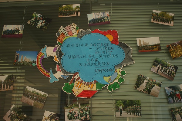 图为:军训照片展示墙