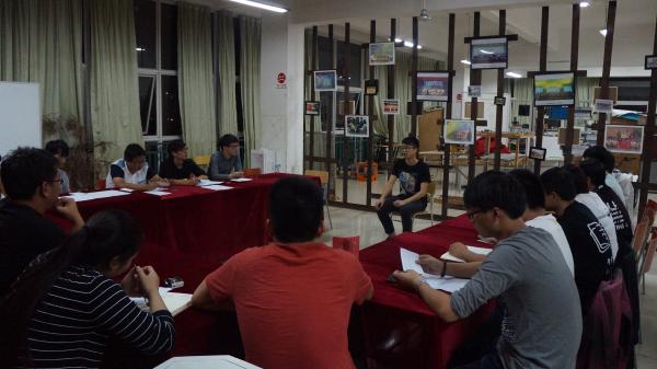 晚上7.30分,面试准时开始,学生干事们按照顺序依次进行面试。尽管心中有些紧张,但干事们并没有慌了手脚,反而越加保持镇定,考虑考官们可能会提出的问题并思考相应合理的答案。