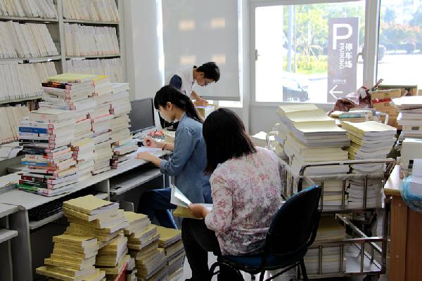 三名志愿者准时来到图书馆,并在图书馆管理员的带领下很快熟悉了工作内容。据悉,志愿者们进行的主要工作是为书籍进行采编和勾书。志愿者们忙碌的身影充斥在整个采编部,清理书册,一本一本的对勾清单。整个过程中,大家分工明确,积极配合,一切进行的井然有序。在浓浓的书香中,传递着他们的志愿服务精神,让志愿服务的玫瑰芬芳绽放。