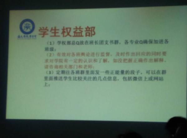 之后,张老师明确2015-2016学年团学工作目标和方向,以十二字方针教导干部:稳步前行、扎实推进、开拓创新。培训时,张日益老师详细规划团委和学生会各部门工作内容,各部门负责人认真记录并提出相关问题。