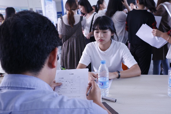 图为:某同学正在求职
