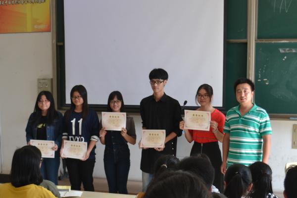 2015年10月21日,志愿者服务大队在明德楼103教室举办了志愿者颁奖典礼,出席此次颁奖典礼的有分团委魏雷老师及志愿者服务大队的各位干事,每一位到场的同学和老师都对此次颁奖典礼充满了热切的期待。 颁奖典礼伊始,魏雷老师首先介绍了志愿者服务大队现负责的各项日常志愿服务,导医、新蕾、阳光、报刊亭、图书馆等。随后,他向大家介绍了参加志愿者活动的积极分子,有吴梦晓、单美莫、王银宁、王晨及胡珂狄等人,这些同学积极参加志愿者服务及APP援外项目,获得了许多志愿者服务时间,均超过总院50个小时的标准。