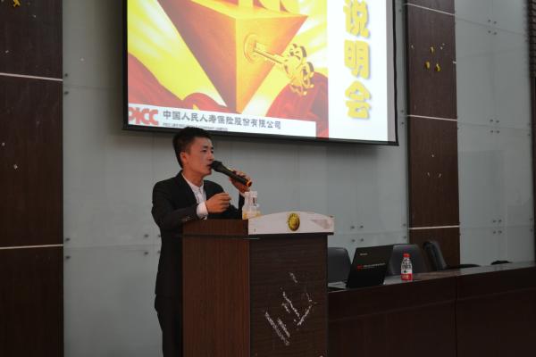 为给面临毕业的大三会计专业学生提供更多的就业机会,10月22日下午13点,由中国人民人寿保险公司举办的“招贤纳士”创业说明会在明德楼105会议室举行。出席本次活动的嘉宾有招生办张学海老师、工商学院分团委林珊帅老师及人保公司宁波各分公司负责人。 活动开始前,主持人用微信抢红包的方式与到场的每一位听众进行了简短的热场互动。大会伊始,首先上台发言的是北仑区分公司经理刘健平,刘健平先生介绍了人保公司的发展史,从发展、实力、责任、到荣誉,对公司进行了全面介绍,再从66周年的历史讲到公司在世界所处的地位,并提出了“美丽人保,与爱同行”的主题。