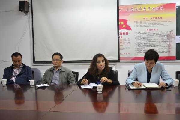 图为:正在进行座谈会 会议开始前,各位老师同部分少数民族学生开展了简短的座谈会,同学们就就业规划提出了自己的想法,老师们给予他们相应的建议。宣讲会于七点准时开始,马海军以“辉煌成就梦想,责任伴我成长”为题,从新疆维吾尔自治区成立60周年来成就的辉煌、拥抱现代文明和肩负责任追逐梦想三点着手,以“去极端化”为重要切入点,揭露宗教极端思想的本质和危害。买买提江则通过分享个人成长经历,引起同学们的共鸣并积极引导同学们树立正确的世界观、人生观和价值观。