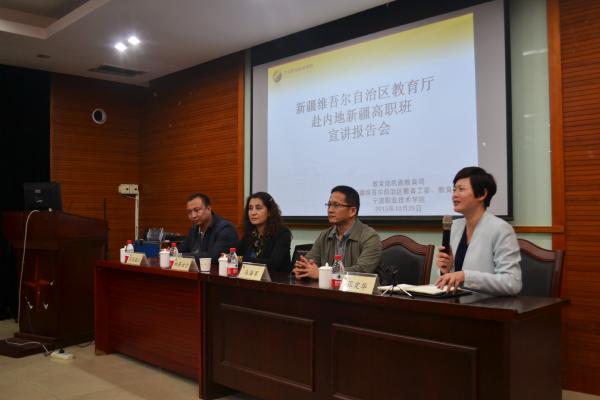 为进一步加强内地新疆学生的德育和思想政治教育工作,宣传新疆维吾尔自治区成立60周年来所取得巨大变化和成就,10月29日晚,新疆维吾尔自治区教育厅赴内地新疆高职班宣讲报告会在我院举行。宣讲团成员新疆司法警官学校政治理论教研室主任、新疆法学会会员马海军、和田医专团委书记买买提江、自治区内地新疆学生工作办公室干部帕蒂古力和我院学工部部长张定华、工商学院分团委书记米娜出席此次会议。我院全体新疆班学生聆听了报告。