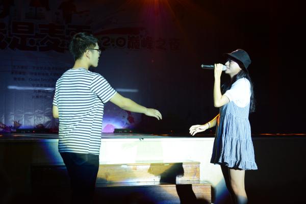 秋雨连绵,骤降的温度并没有掩盖过镁光灯下的璀璨更没有熄灭同学们的热情,大家期盼着只为迎接化工学院“我是麦霸2.0”的巅峰之夜。终于,拉开了久违的幕布,灯光倾泻而下舞蹈队激烈的舞蹈瞬间点燃了会场内的热情,在大家意犹未尽时主持人隆重的介绍了化工院长陈亚东和来自各个分院的团委书记还有本场比赛的评委们,其中不乏有第二届宁职之星郭登辉,建工十佳歌手高婵娟等学长学姐们。第一轮比赛中采取双人合唱在六个组合中抉择出六位胜利者,再从余下六位选出两位复活一同进入巅峰之夜的八强。