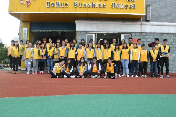 2015年11月3日11点45分,工商学院志愿者们准时在南门集合,准备前往阳光学校,为正在举行的阳光运动会当爱心裁判,参加此次志愿者活动的有阳光志愿者,以及带队老师分团委魏磊老师。
