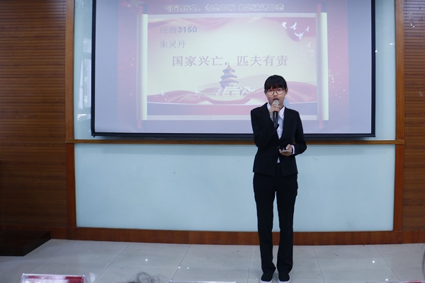 比赛过程中,选手们尽情畅谈了自己对“铭记历史,勿忘国耻”这个活动主题的理解,并各自展示了深厚的演讲功底,彰显了当代大学生积极向上的精神风貌和深厚激烈的爱国热情。其中商英3153的叶德鑫同学精彩的演讲博得了同学们热烈的掌声和喝彩声,也得到了各位评审的一致好评,将现场的气氛带到了一个高潮。