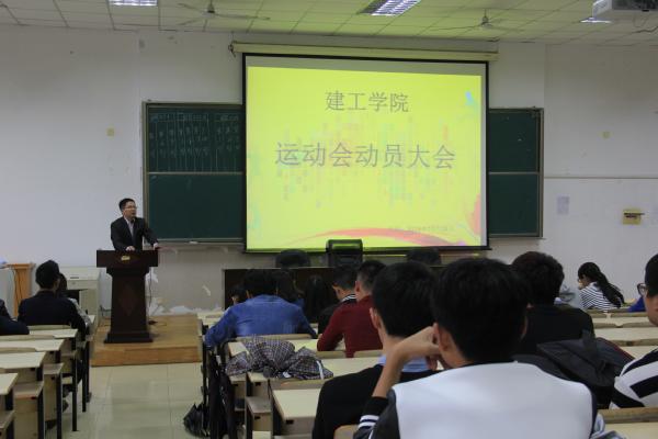 在我校第十七届运动会即将到来之际,为充分调动运动员的积极性,同时保证训练期间各项服务工作有序进行。10月29号中午,建工学院在精技楼503教室举行了运动员动员大会。出席本次大会的有党组织书记丁立人老师、学工办主任吕勇老师、辅导员周思勇老师、建工学院分团委学生会主席团成员和副部长以及全体运动员。