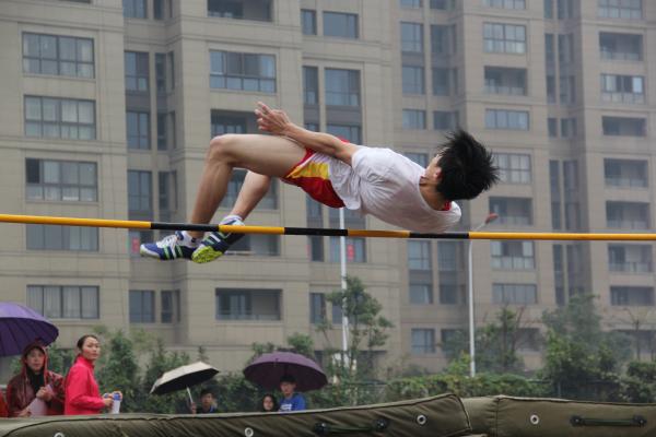 据了解,赛前运动员们认真做着准备活动,摩拳擦掌,准备在比赛中一展雄风。上午9:45,跳高比赛准时开始。运动员们按照比赛次序依次进行试跳,每人只有一次试跳机会。试跳完成后比赛正式进行,来自建工学院的邱左同学经过一段距离的助跑,纵身一跃,跨过竹竿,完美落地。他的动作行云流水,蹬地有力。竹竿的高度也随着运动员们每轮跳跃逐渐升高,跳跃的难度也不断地被加大,而邱左同学的意志却丝毫不减,在场边的同学们喝彩声中愈显得气势昂扬,一次次地经受住考验。经过预赛决赛激烈的角逐, 邱左同学以1.70米的成绩远胜对手,摘得本次男子跳高比赛的桂冠。
