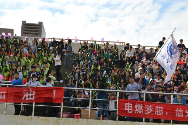 2015年11月4日,在即将迈入冬天的时刻,校运动会如期而至。此次运动会于早上八点在大操场上东校区田径场正式拉开了帷幕。为让工商学院的运动健儿们在赛场上展现学院风采,在工商学院团委学生会外联部与志愿者服务大队的带领下由工商学院各班同学志愿组建了一支强大的队伍---工商学院啦啦队。 比赛开始后,啦啦队的成员们个个兴致高昂,在干事们的带领下,伴着节奏的鼓点,大声喊着口号:“工商出场,势不可挡!” 即使天空不作美,但他们仍然扯着嗓子呐喊“自古英雄出工商,唯有工商不言败!”“青春无悔,工商无限,青春无畏,工商扬威!”等几句口号。