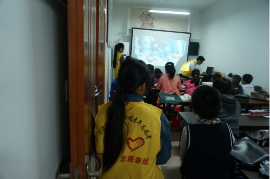 而等到小朋友们都做完作业后便开始教他们做吸管眼镜,孩子们也是兴致盎然、跃跃欲试,想要为自己做一副属于自己的吸管眼镜。在手工过后,志愿者孔震涛同学通过ppt的展示,结合孩子们自身的学习方式为他们介绍好的学习方法,小朋友们也都积极举手发言谈了自己的看法,在ppt结束后,志愿者和孩子们共同观看电影。
