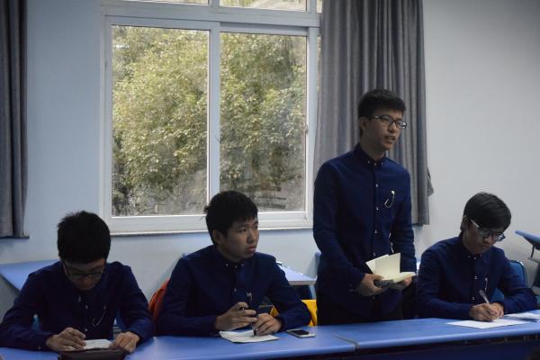 为纪念抗日战争胜利70周年暨世界反法西斯战争胜利七十周年,2015年11月9日12点电信学院于精技楼112、110教室开展了“抗日战争胜利70周年暨世界反法西斯战争胜利七十周年”辩论赛半决赛。此次比赛特别邀请了主席团助理谢柏通和蒋奇呈,最佳辩手马浩峰担任评委。图为:比赛中
