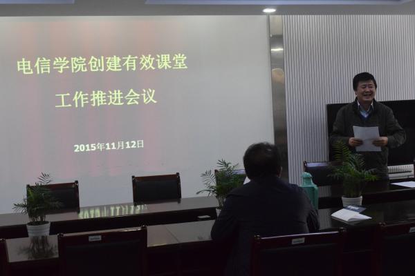 为加强大学生思想政治教育,提高大学生的思想政治素质。2015年11月12日下午1点30分,电信学院在敬业楼党员之家开展了主题为“有效课堂及其实施”的培训会,分院名誉院长吴志荣、分院副院长汪志达、分院常务副院长张岐、党总支书记龚友国老师及全体专业教师参加了此次培训,会议由电信学院常务副院长汪志达老师主持。