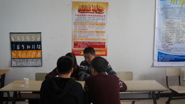 尽管海天五楼人头涌动,但海天学子们依旧保持良好秩序,手持自己精心准备的简历,穿梭于人流之中,以最好的状态去面对招聘人员的提问。
