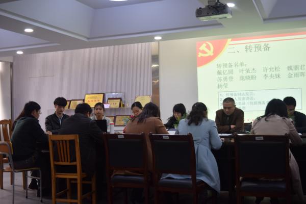图为:转预备名单 根据大会议程,全体起立,以最佳的精神状态面对国旗奏国歌。随后,大会第二项议程,由转预备党员戴亿圆、叶依杰、许允松、魏丽君、苏勇登、庞晓盼、李央妹、金雨晖、杨莹9位转预备党员和毛炳泽、郑玲珑两位转党员分别进行了详细的自我介绍、工作思情情况、对党的认识和入党动机。其次由介绍人发表讲话,然后由各个到场的党员和预备党员发表意见。由到场的党员进行无记名投票选出转预备党员和转正党员的党员名单。最终通过转正党员转为正式党员,积极份子正式成为预备党员。随后,转预备党员、转正党员经过投票一致通过。所有的转正党员和转预备党员用一句话来表明自己的决心和今后的目标。