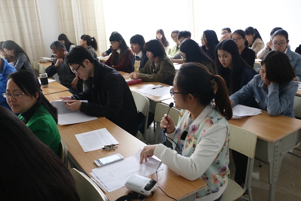 图为:入党积极分子在进行思想汇报