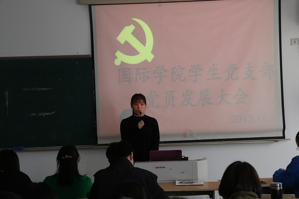 11月11日,国际学院党支部发展大会于国际楼201教室举行,本次大会旨在吸纳优秀学生壮大党员队伍,为支部将来的发展打下坚实的基础。大会由国际学院党总书记袁建萍、国际学院副院长卢杭央、支部组织委员段丽娟等老师参与指导。支部多名正式党员、预备党员以及入党积极分子积极参加了此次会议。