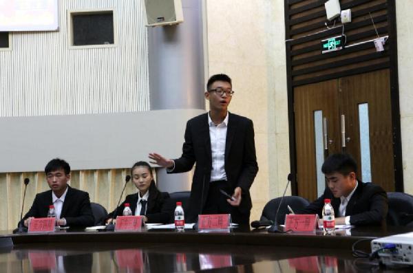 今天2015年11月13日我校在艺术学院国际会议厅举行了反法西斯战争胜利50周年辩论赛。此次辩论赛的主题是外来文化的渗透利大于弊还是弊大于利。正方辩手为艺术3152班的四位同学,反方辩手为工美3150的四位同学。