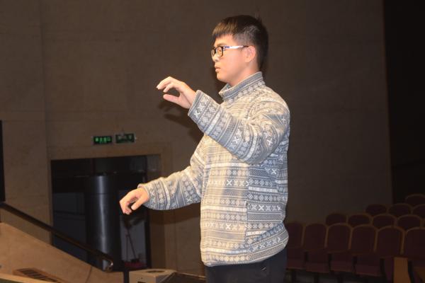 为纪念一.二九运动北平学生的爱国行动,增强爱国意识。电信学院于11月18日晚5在李惠利大剧院进行 “一二·九大合唱”彩排活动。主席团助理谢柏通、蒋奇呈、曾一珉、周玚杰、王凯及各部门部长助理出席此次彩排。