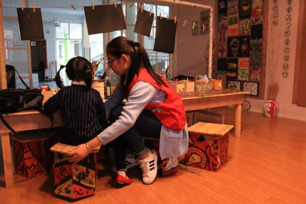 各个小组的任务都很快完成了,小朋友们的午睡时间也结束了,为老师写完教学课程之后又一对一的指导小朋友们画画了,期间,志愿者时不时的和小朋友打闹着,又和蔼仔细的教小朋友用颜料涂色。十分有爱的画面,尽管不想打破,但是三个小时志愿时间就是这么快,依依不舍的看着小朋友们回到教室等待大人的到来。最后的工作就是打扫卫生了,志愿者们也细心默默的完成着,珍惜着最好的时光。
