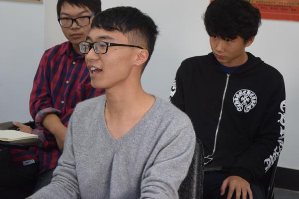 图为:电子3143班学习委员发言中