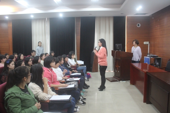 图为:袁老师正在讲话
