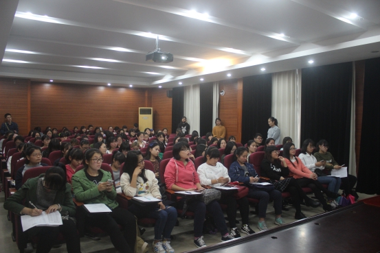 为更好开展义工活动,将奉献快乐精神进行到底,11月16日中午12点20分,国际学院勤工部在国际楼102教室开展了义工动员大会。国际学院党总支书记袁建萍老师,团委吴艳艳老师以及14、15级学生纷纷到场出席此次大会。