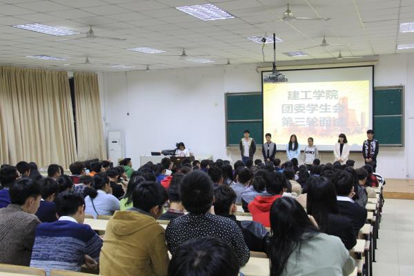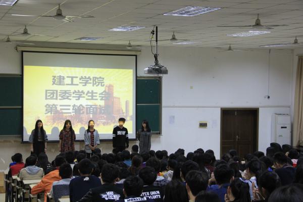 2015年11月15日晚6:00,建工学院团委学生会第三轮面试在技精楼503教室举行。据悉,此次面试由建工学院团委学生会负责,共有128名新生参加,担任此次面试的考官为建工学院分团委主席团成员们以及各部门的副部长。
