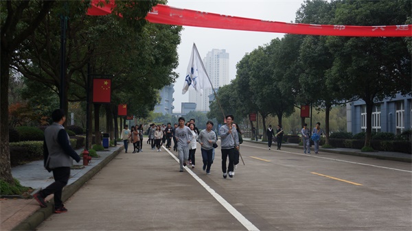 活动一开始,领队干事高举海天学院大旗,率领队伍进行绕校园一圈热身慢跑。接着进行“逢七过”游戏比赛,所有干事被分成四组,各组进行五分钟练习,在这段时间里每个人的大脑都在飞速运转,时刻牢记规则。之后,每组推选三名组员进行决赛,在激烈的对战后,第四组成为落败组。