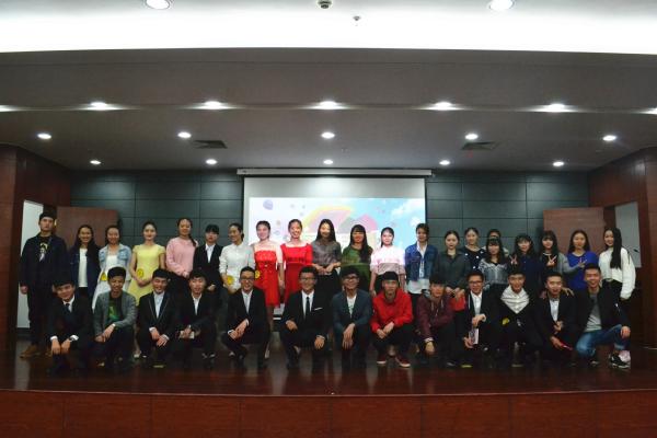 图为:全体人员合影 比赛过程中,主持人以及选手们通过游戏与观众互动,派送礼品,化解场上紧张的氛围。比赛进行了两个半小时并圆满结束。本次比赛的成功举办为众多播音主持爱好者提供了一个展示自我的平台,同时也丰富了校园文化生活。工商学院 李梦圆/文 朱宝杰/摄