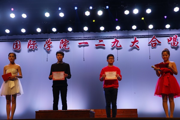 为纪念1935年12月9日北平大中学生数千人在中国共产党的领导下举行的一次大规模爱国行动,并增强同学们的爱国精神,国际学院于11月18日晚6点于校李惠利大剧院举行了一二·九大合唱比赛。此次参赛的共有13个班,比赛嘉宾有国际学院院长杨林生、党总支书记袁建萍、国际交流教研室主任魏晋、国际学院王伟老师等。并有班级班助和团学代表组成的评委团。