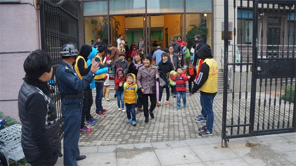 放学的时间逐渐接近,校门口早已是等待多时的家长们。当放学铃声响起时,在志愿者们的指挥下,家长们排着队伍依次刷卡进入幼儿园内接送自己的孩子。长长的家长队伍从正门进入,领着各自的孩子从侧门走出,一切显的井然有序。