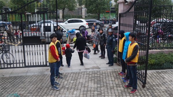 11月24日下午3点整,海天学院新蕾幼儿园护苗活动准时开展。5位志愿者迎着烈烈冷风前往新蕾世贸幼儿园,为保障孩子们放学安全和维持放学时的幼儿园秩序献上一份自己的力量。