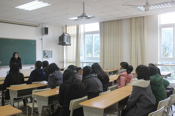 图为:袁建萍老师正在讲话