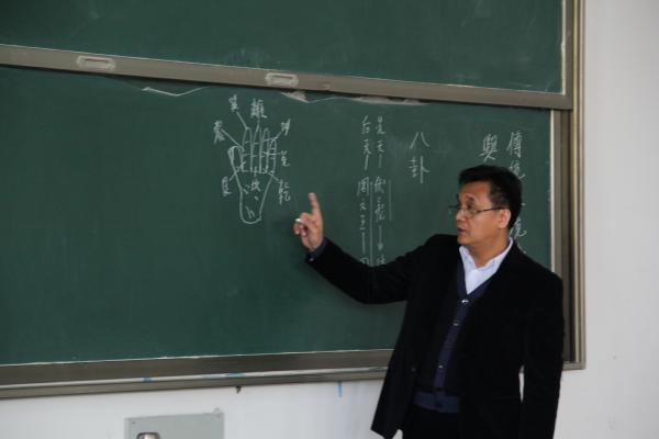 据悉,此次讲座特邀了建工学院特聘教授黄祖宁,黄教授被称为国家注册一级建造师、土木建筑高级工程师以及中国易经协会客座教授等。此次讲座,黄教授以古建筑的风水入题开始讲座,讲到复杂的风水理论,都恪守天人合一、阴阳平衡、五行相克这三大古典原则。黄教授在黑板上板书写了五行,金、木、水、火、土这五行相生相克,并举了很多的例子与下面学生进行互动,使气氛热烈起来。后来,黄教授又讲到了手相,在黑板上画了一只手然后指出各个部位代表的名称,同学们也纷纷拿出自己的手,跟随着教授。在讲座的最后,教授给在座的同学们留下了这么一段话:把自己当成别人是无我;把别人当成自己是慈悲;把别人当成别人是智慧;把自己当成自己是圆满。