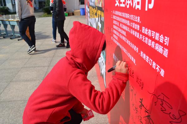 图为:参赛选手正在签到 比赛开始前,在外联部所有干事的指引下,四十名选手依次进行了扫码,签到,签名等准备工作。主持人朱航宇对本次活动的流程和游戏赛进行详细介绍后,比赛正式开始,选手们不顾形象的大吃起来,吞咽,喝水,一个个搞笑的吃相引起了台下观众狂热的浪潮。其中一号选手建工学院的陈军庆凭借可爱的外表和比赛过程中搞笑的动作逗乐了在场的每一个人。24号选手建工学院的钟辉放弃了拿勺,直接用手狼吞虎咽的吃起来,使台下的掌声一阵接一阵。