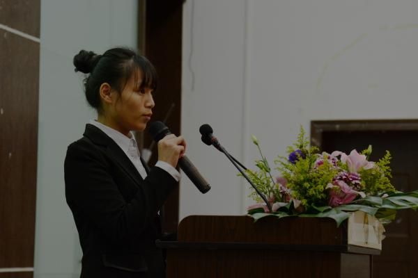 图为:化工学院林跃慧同学致化工学院第八次团员、学生代表大会闭幕词。