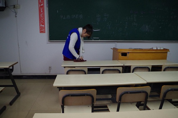 在时长两个小时三十分钟的清扫任务之后,义工们看着干净整洁的教室,脸上露出来欣慰的微笑。相信他们在此次活动后,也会继续心怀感恩地为国际学院以及总院奉献出自己的力量,为学校做善事。