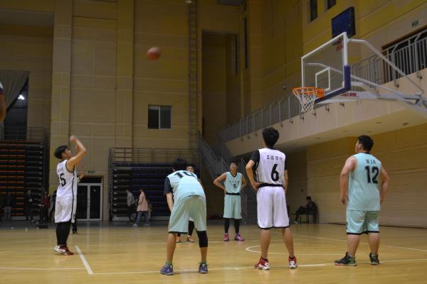 为了丰富大学生课余活动,提高学生参加体育活动的积极性,2015年12月2日晚上八点,三项球赛男子组篮球赛在宁波职业技术学院顾国华体育中心举行。此次比赛在工商学院与化工学院之间展开。我分院啦啦队早早到达体育馆,为比赛选手们加油助阵。