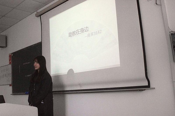 图为:商英3142班班长进行答辩