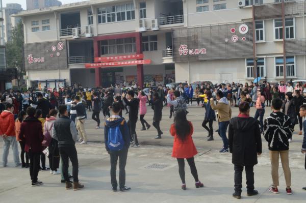 紧接着音乐又先后切换成《bad romance》、《jai ho》等,但跳舞的同学始终能跟随音乐的节拍舞动,并且参与舞蹈中的人越来越来,直至最后形成60人的舞蹈大军。越来越多的同学也被这盛大的场面所吸引,人群将整个广场围成一圈。每一位跳舞的同学脸上都带着笑容,动作充满活力,他们的热情似火驱走了冬日的寒意,用舞姿诠释着大学生别样的青春。当歌曲声停止的瞬间,就如快闪的含义般,所有同学快速涌出围观的人群中,消失在人们的视线中。