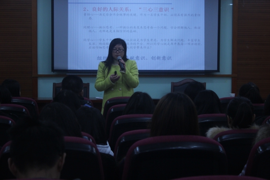 为让班级团支书及学生干部在思想上与同院保持高度一致,严格要求,使自己所负责的工作符合院团委及系团委的要求,把握正确的方向,更好的完成工作。于12月15日中午在国际楼102会议室,国际学院分院党校开课了,此次党课由国际学院党总支书记袁建萍老师主讲。