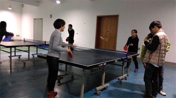 图为:比赛现场 在裁判员的监督下,比赛秉承着公平、公正、公开的原则进行。虽然教工们并没有进行过专业的训练,但是在这一方小小的乒乓球桌上,各种技巧也是频频上演。直拍、横排、扣球、旋转球、左右开弓、弧线球等也都一一体现,让人不得不拍手叫好,欢呼喝彩,现场气氛十分热烈。 此次活动的举行,不仅给我们展示了在校教职员工积极向上,努力拼搏的精神面貌,同时也为广大的教职员工们提供了一个互相交流了解的平台和展示自我的机会。相信通过此次活动之后,教职员工们的生活中将会注入一道新的活力。 海天学院宣信中心 戴元文 文