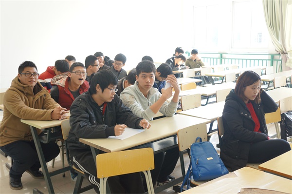 图为:招聘会现场 活动一开始,先由华森信息有限公司的负责人进行介绍。主要介绍了公司的业务和需求岗位。随后,同学们就自己要求的待遇问题进行了提问,其中包括同学们十分关心的薪酬及吃住问题。负责人就同学们提出的问题进行解答,并表达了公司对人才的渴望。