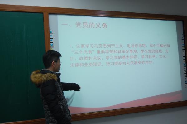 宣讲以两位同学自我介绍开始,参与宣讲的是化工3136班的预备党员樊春嵘和生物3140班的入党积极分子段若男。自新中国成立以来,大家过上了越来越好的生活,医疗补助的力度也越来越大,实行了九年义务教育,在中国共产党的领导下,中华人民共和国越来越好,人民的生活自然也越来越好。入党是一个信仰问题,而现在个人价值观多样化,所以坚定一个信仰很重要,入党的好处就是树立一个信仰,并时刻坚定它,加入一个组织,并随时约束自己的言行,其中,还讲到了党员的义务。党员义务是党员对党应尽的责任,是党对党员的基本要求,是党员条件的具体化,也是衡量一个党员是否合格的具体标准。同时化工3155班、3156班、3157班以及生物3150班也同时开始宣讲活动。