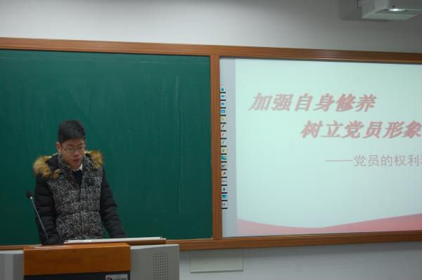 2015年12月14日周一早自修,化工学院预备党员和入党积极分子宣讲小组来到4号楼化工3156班进行宣讲。