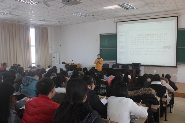 12月17日中午12点30分在精技楼503教室进行了本学期最后一次的团校课程。开课主讲人为国际学院团委朱娟老师,参加的有团委学生会各个干事们,开课的主要内容是国学。